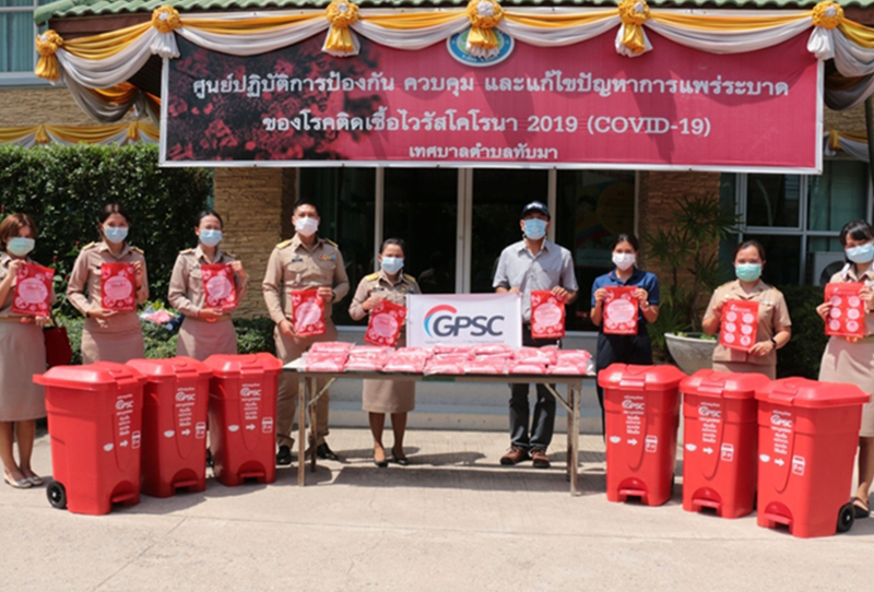 On 26 April 2020, Khun Wasan Susoonthron, Community Relation Section Manager of Global Power Synergy Public Company Limited or GPSC, the innovative power flagship of PTT Group, has provided six infectious waste bins and 8,100 bags anti-virus zip lock bags to sort out used masks and prevent the spread of the virus when discarded. Those items were donated to two local government organizations in Rayong Province, including Nam Khok Sub-district Municipality and Thap Ma Sub-district Municipality, who will distribute them to people and enhance their knowledge and understanding of infectious waste management. This will also help prevent those who must carry out infectious waste for disposal from the virus so that they can perform their duties safely.