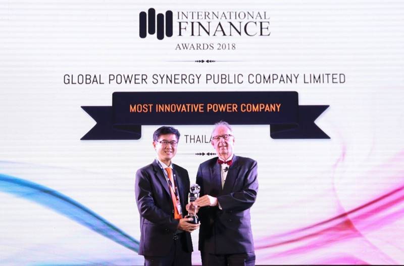 On January 25, 2019, Mr. Somkiat Masunthasuwun (left), Executive Vice President : Business Development and Corporate Strategy of Global Power Synergy Public Company Limited or GPSC, the innovative power flagship of PTT Group, has been awarded the “2018 Most Innovative Power Company – Thailand”, which is set to be given to organization in power business that have outstanding performance in creating new innovation. The award-granting ceremony was held by International Finance Magazine (IFM) in the “International Finance Award 2018” at Grand Hyatt Erawan in Bangkok.
