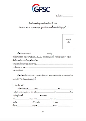 ใบสมัครขอรับทุนการศึกษาประจำปี 2565