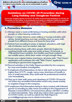 Guidelines on COVID 19 Prevention during Long Holiday and Songkran Festival