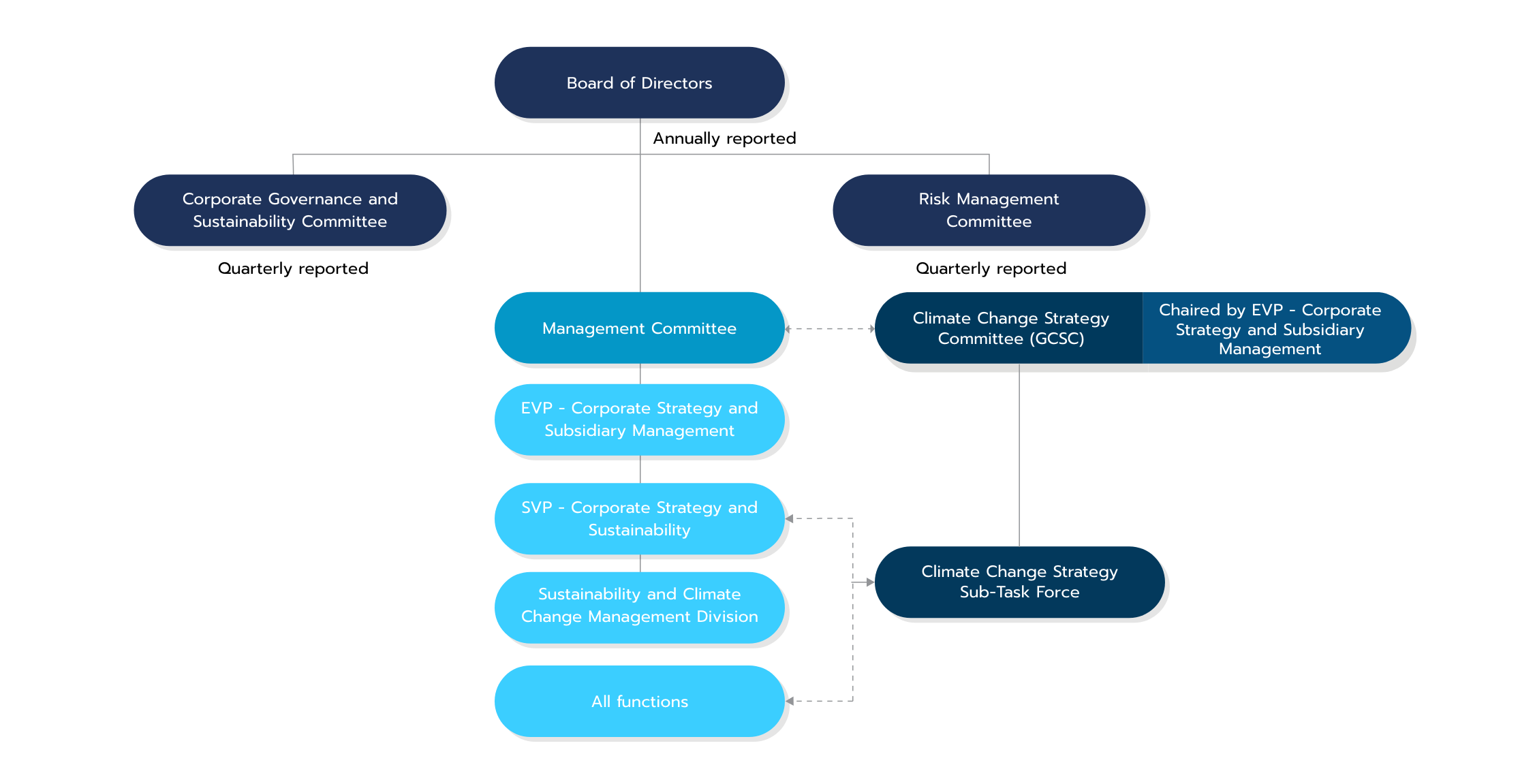 - Due to the current situation and global pressure for GHG emission reduction, consumers have grown more interested in utilizing electricity produced from renewable energy in order to avoid contributing to such emissions. If the company continues to rely heavily on fossil fuels and delays decarbonization in power production, this may lead to a decrease in purchasing volume, customer satisfaction, and ultimately impact the company’s revenue. However, the company may create a business opportunity by investing in power production technology that utilizes low GHG-emitting renewable energy.